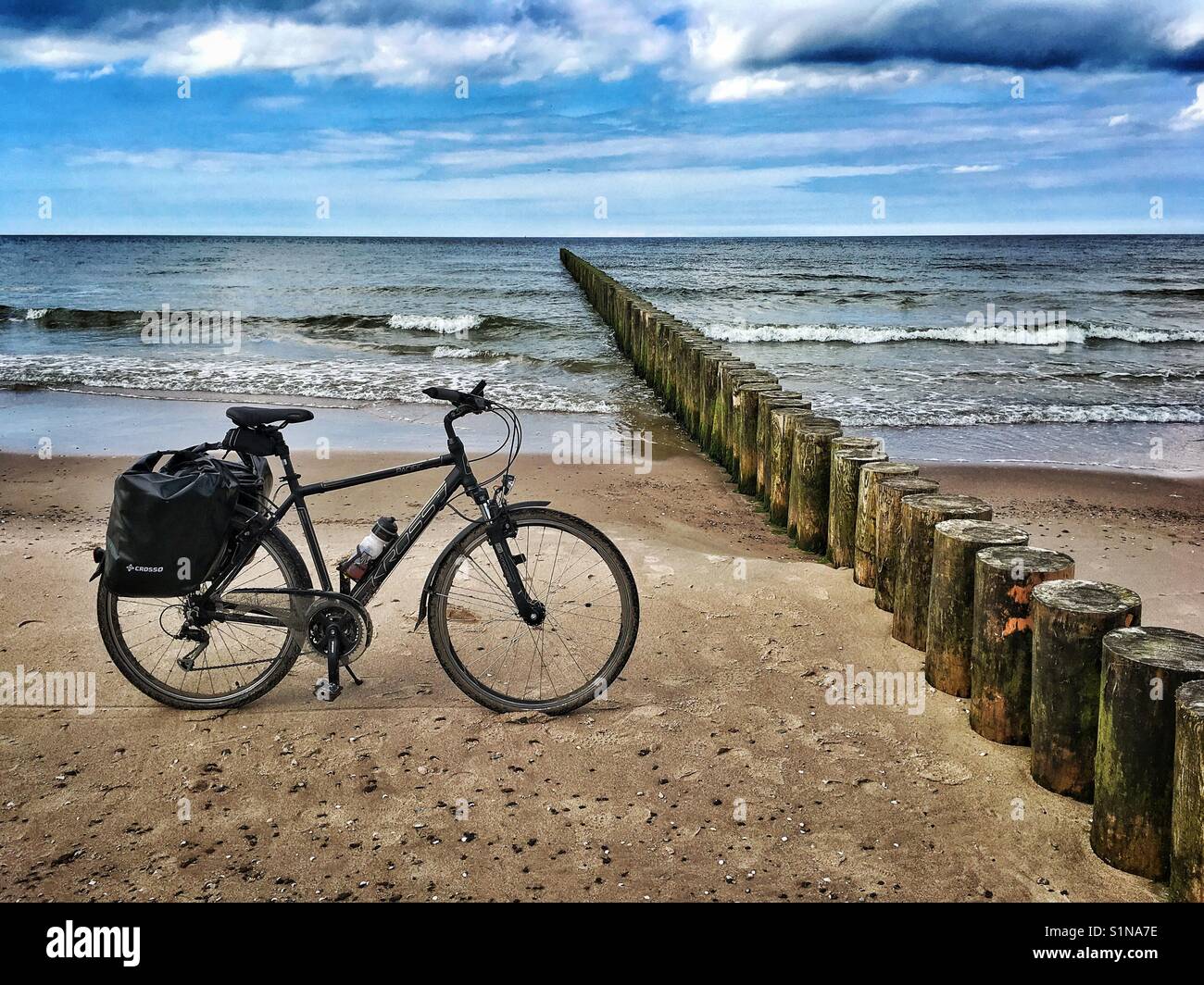 Fahrrad Neben Holz Wellenbrecher Auf Der Ostsee Strand In Der Nahe Der Ortschaft Niechorze Polen Stockfotografie Alamy